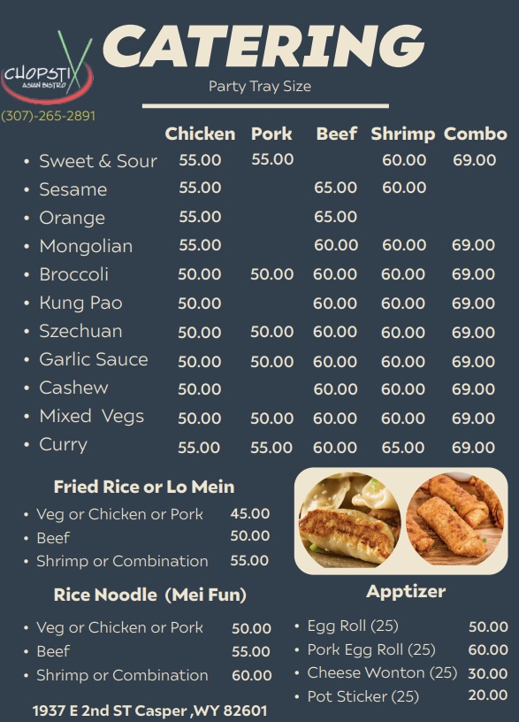 Welcome to Chopstix Asian Bistro, a culinary delight nestled in Casper, WY. Known for its enticing takeout menu, this bistro has quickly become a favorite among locals craving authentic Asian cuisine.